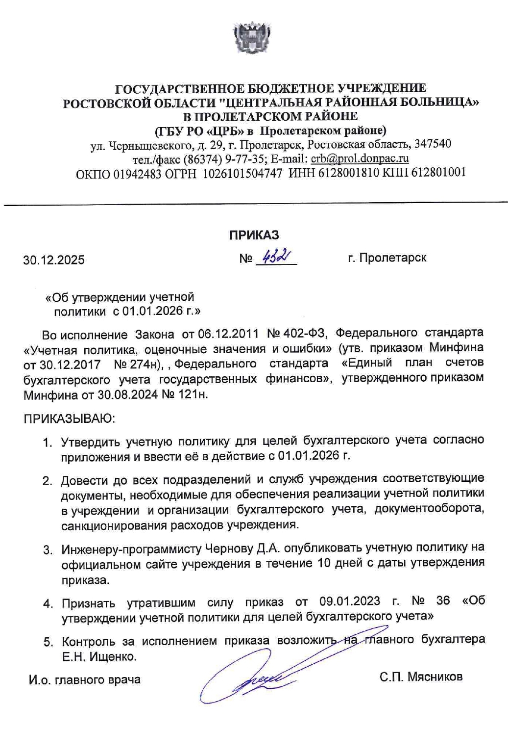 Учетная политика ГБУ РО "ЦРБ" в Пролетарском районе. Информация о материале Опубликовано: 30.12.2025 12:56 Просмотров: 10 (Скачать в формате PDF) Вперед